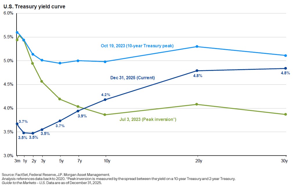 After several challenging years, fixed income regained its footing. The 10-year U.S. Treasury yield ended the year near 4.2%, and the yield curve moved back into modestly positive territory following a prolonged inversion.